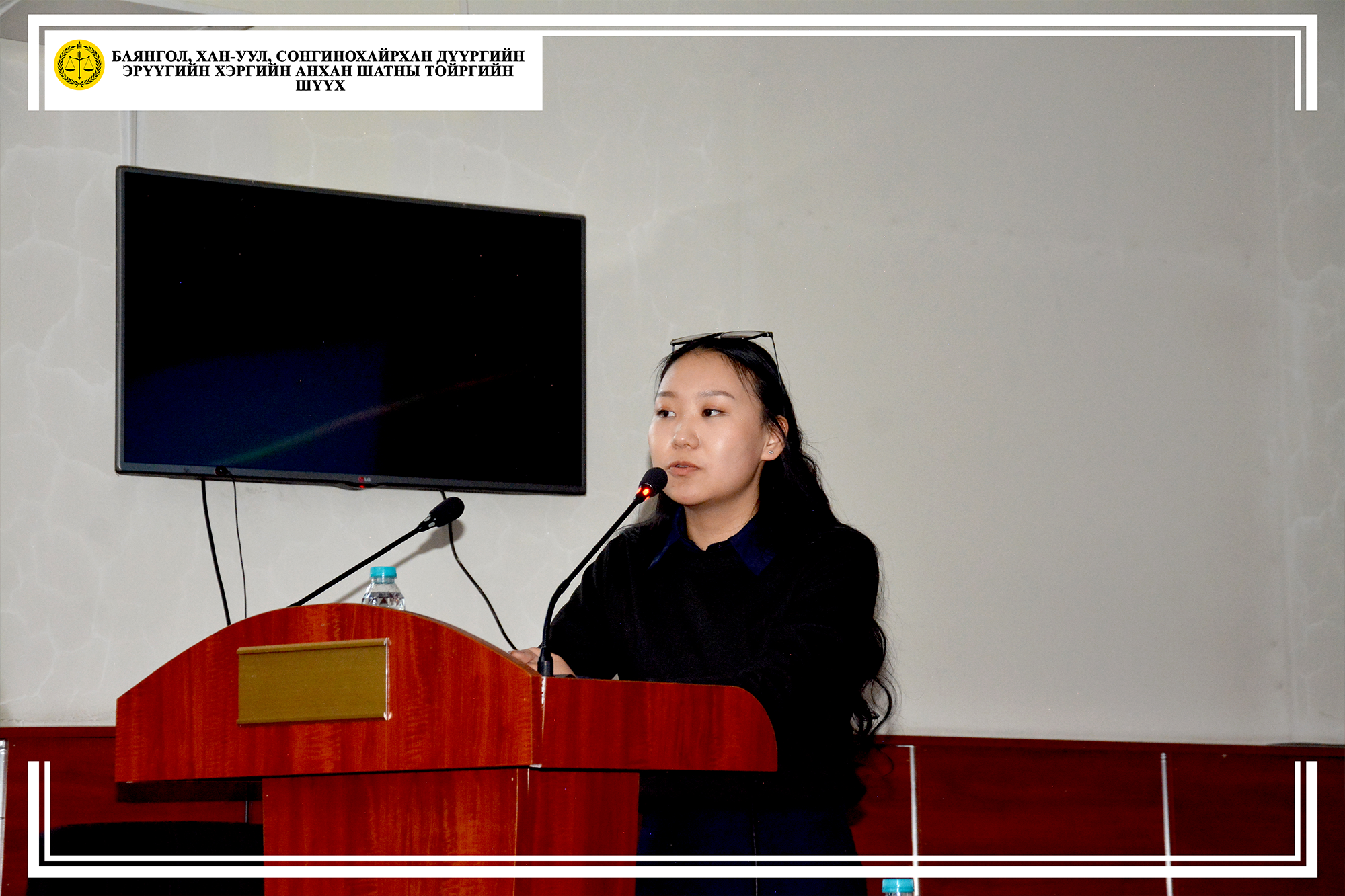 Баянгол, Хан-Уул, Сонгинохайрхан дүүргийн Эрүүгийн хэргийн анхан шатны тойргийн шүүхийн Тамгын газрын зохион байгуулалтын хэлтсээс 2025 оны 02 дугаар сарын 14-ний өдөр "ТӨРИЙН АЛБАН ХААГЧИЙН ЭРҮҮЛ МЭНД, ЁС ЗҮЙ" сэдэвт сургалтыг зохион байгууллаа.