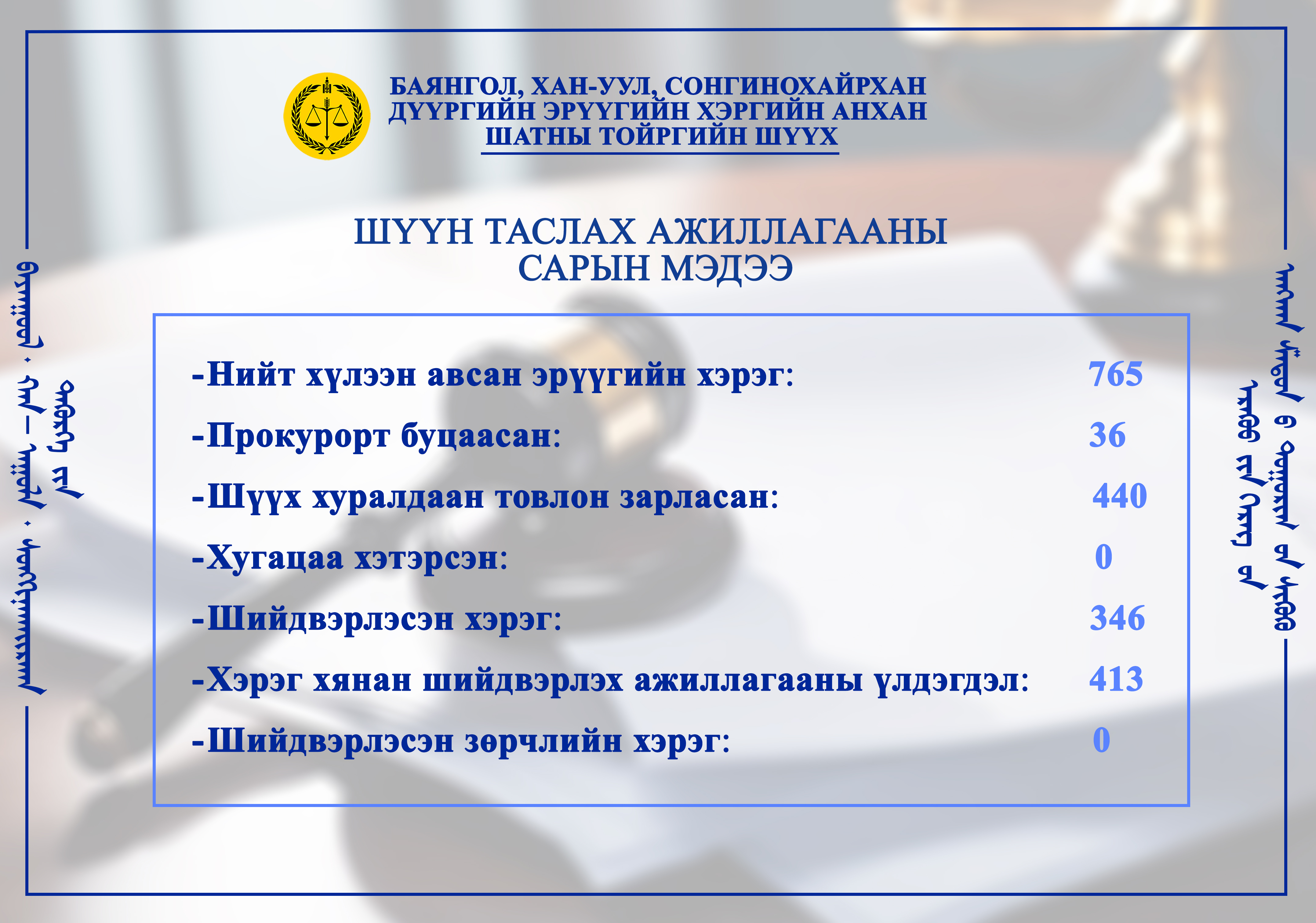 Шүүн таслах ажиллагааны сарын мэдээ / 1 Дүгээр сарын байдлаар/
