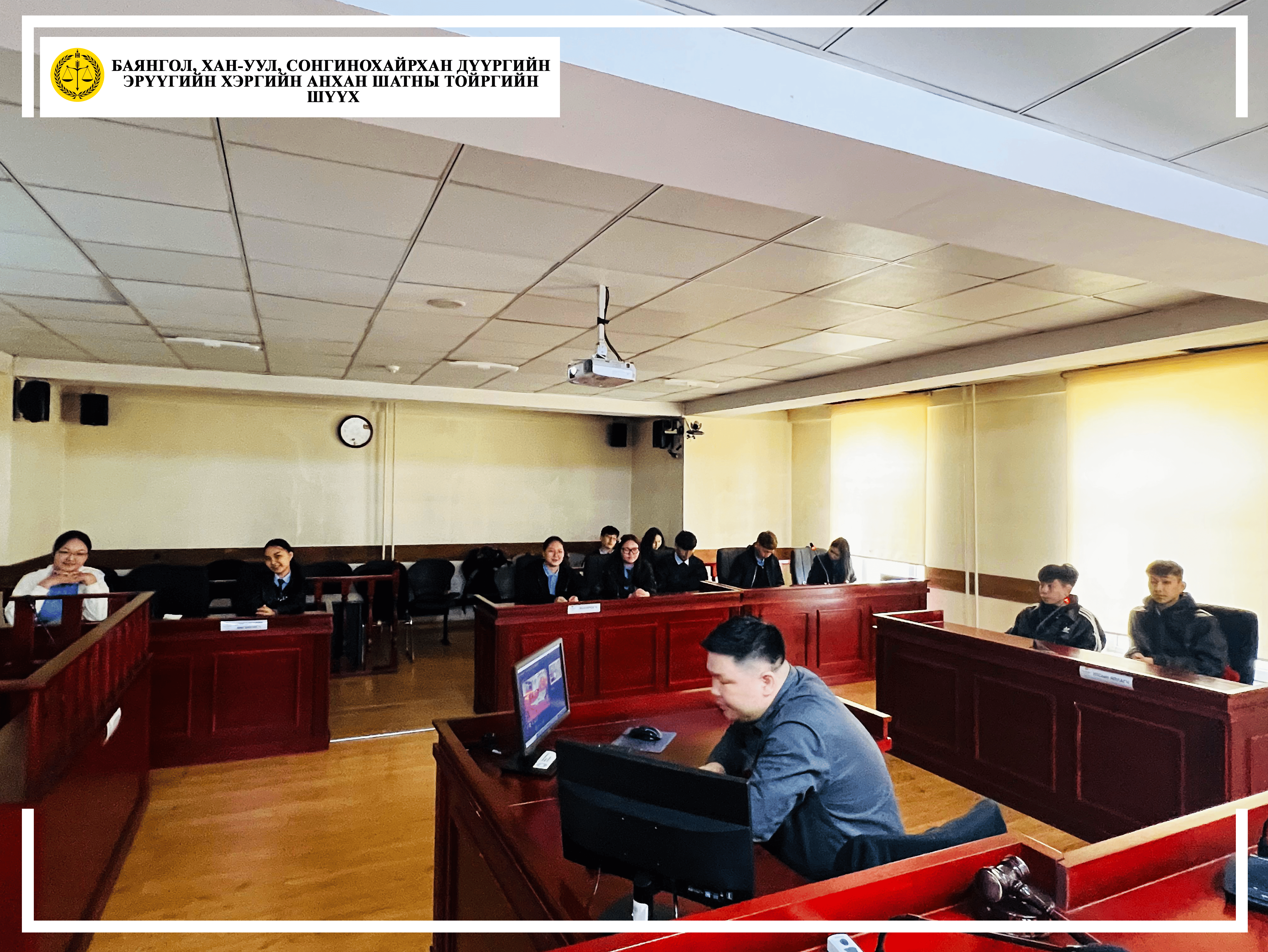 Сонгинохайрхан дүүргийн Ерөнхий боловсролын "Өнөр" сургуулийн 11 дүгээр ангийн сурагчид 2025 оны 05 дугаар сарын 30-ны өдөр Баянгол, Хан-Уул, Сонгинохайрхан дүүргийн Эрүүгийн хэргийн анхан шатны тойргийн шүүхийн байранд хүрэлцэн ирж, шүүхийн ил тод нээлттэй байдал, шүүхийн өдөр тутмын үйл ажиллагаатай танилцаж, сургалтад хамрагдав.