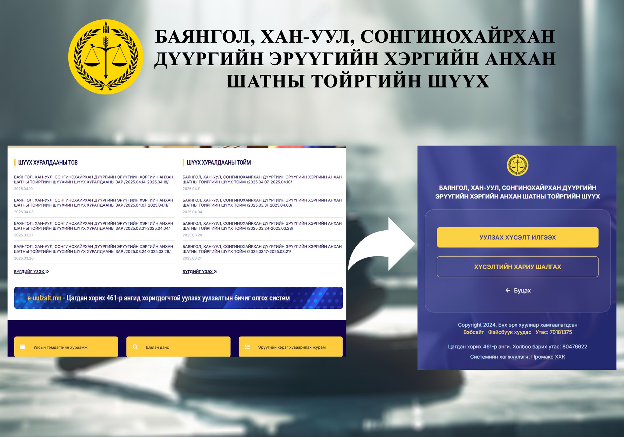 Баянгол, Хан-Уул, Сонгинохайрхан дүүргийн Эрүүгийн хэргийн анхан шатны тойргийн шүүхийн тамгын газар