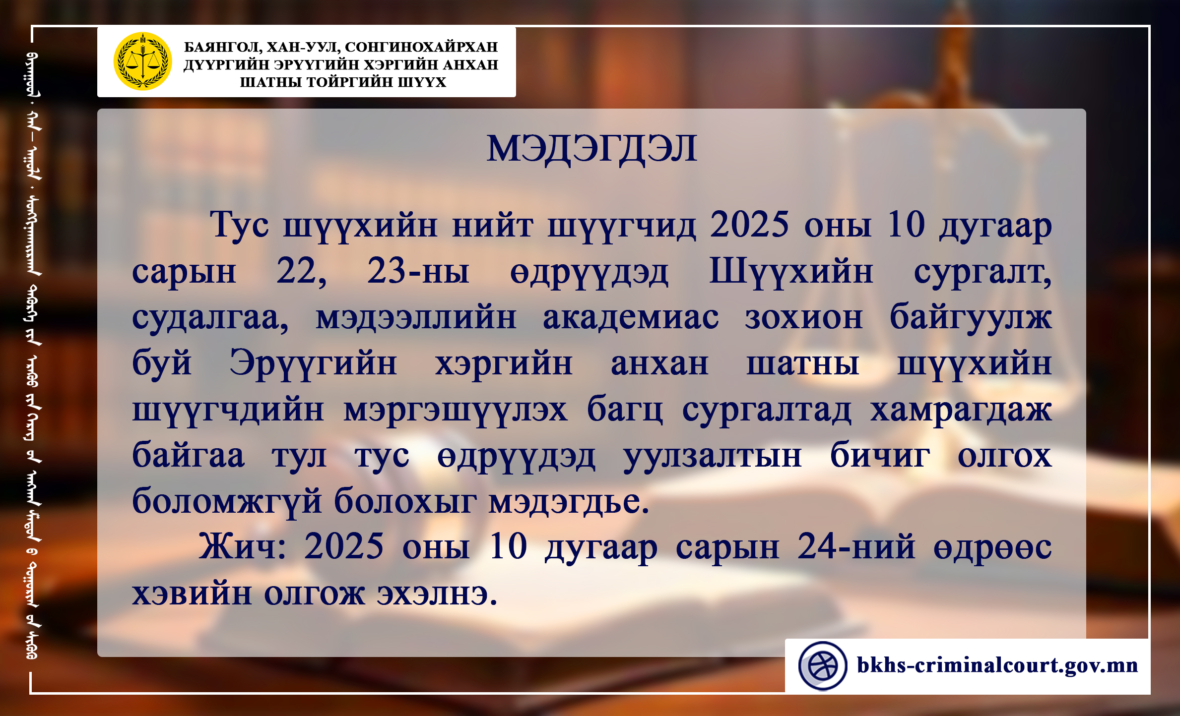 Шүүх хуралдааны зар