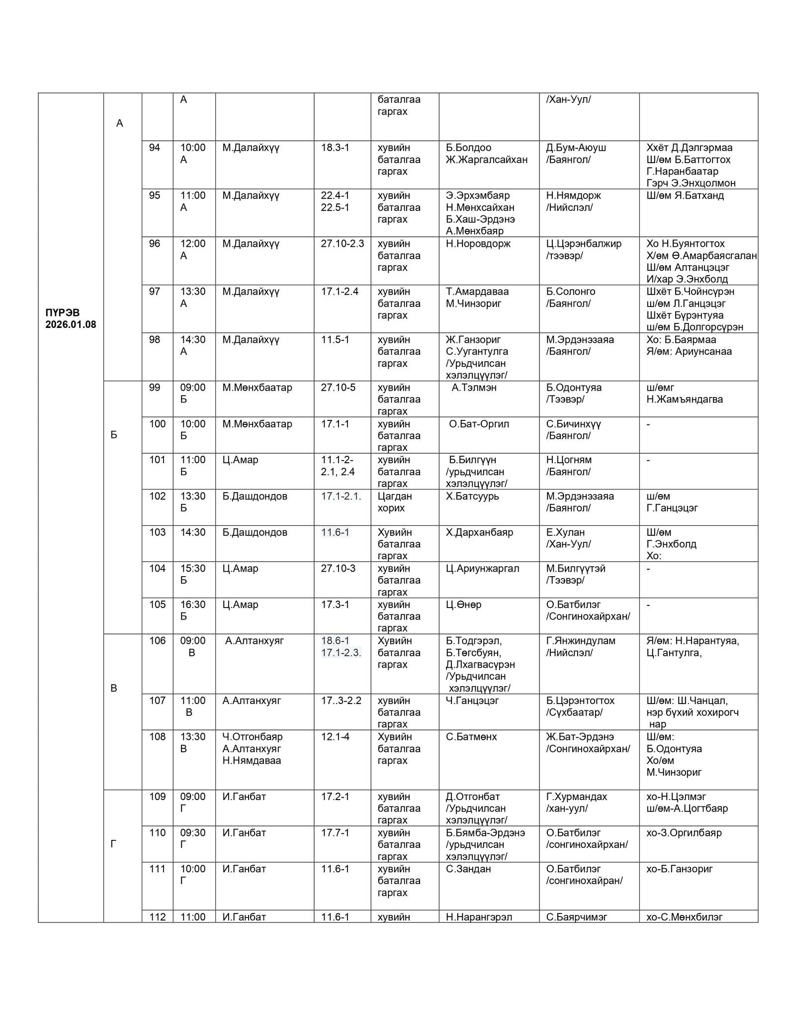 - БАЯНГОЛ, ХАН-УУЛ, СОНГИНОХАЙРХАН ДҮҮРГИЙН ЭРҮҮГИЙН ХЭРГИЙН АНХАН ШАТНЫ ТОЙРГИЙН ШҮҮХИЙН ШҮҮХ ХУРАЛДААНЫ ЗАР /2026.01.05-2026.01.09/