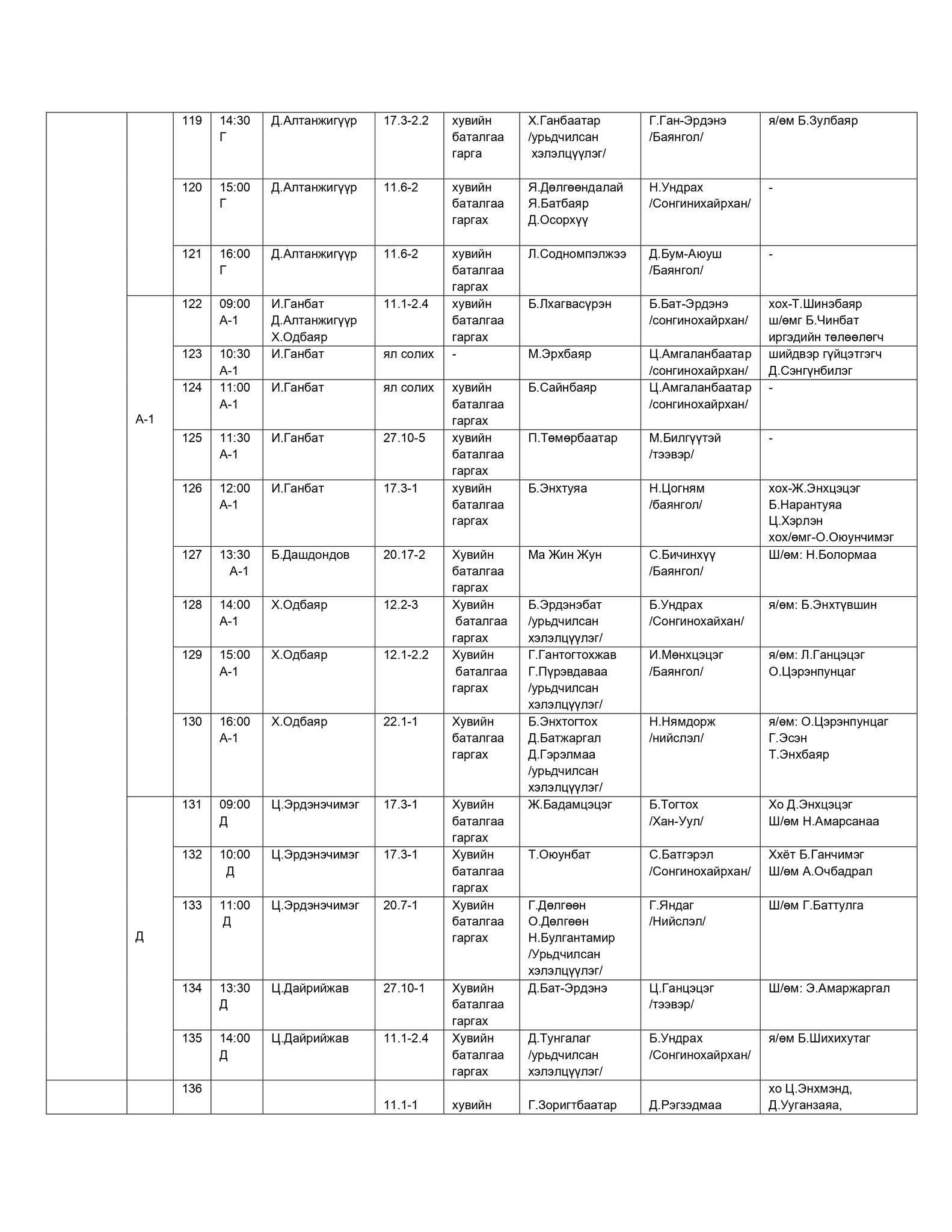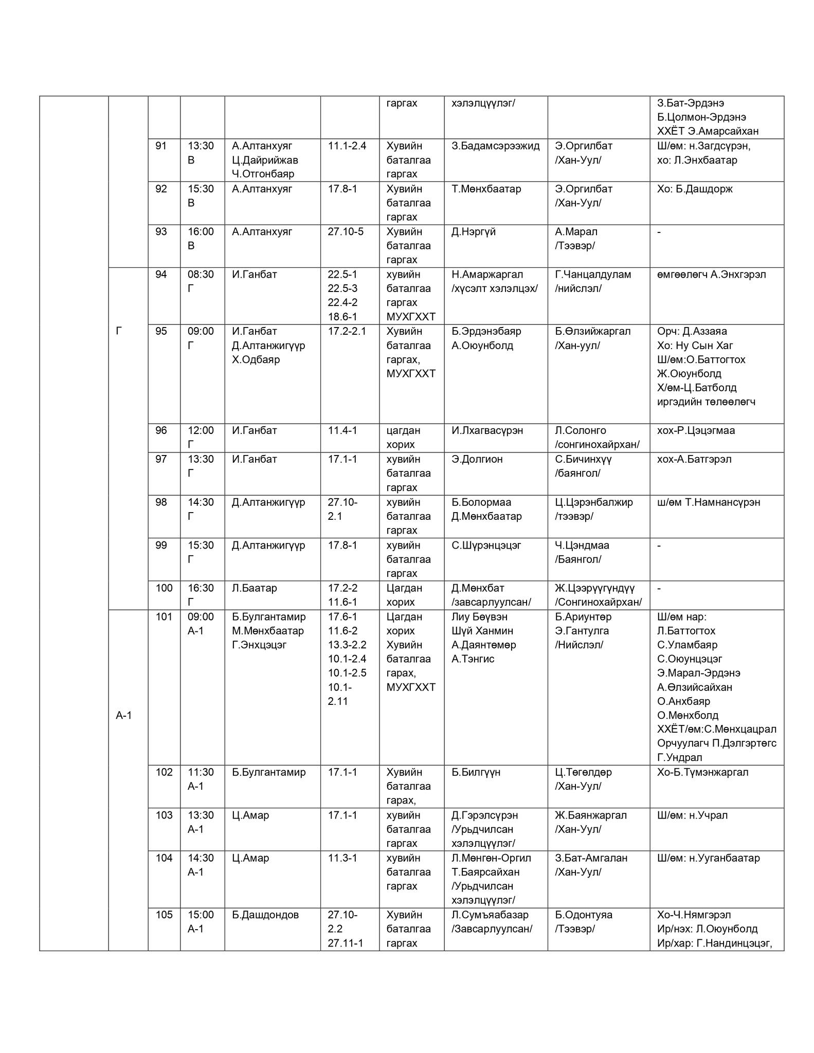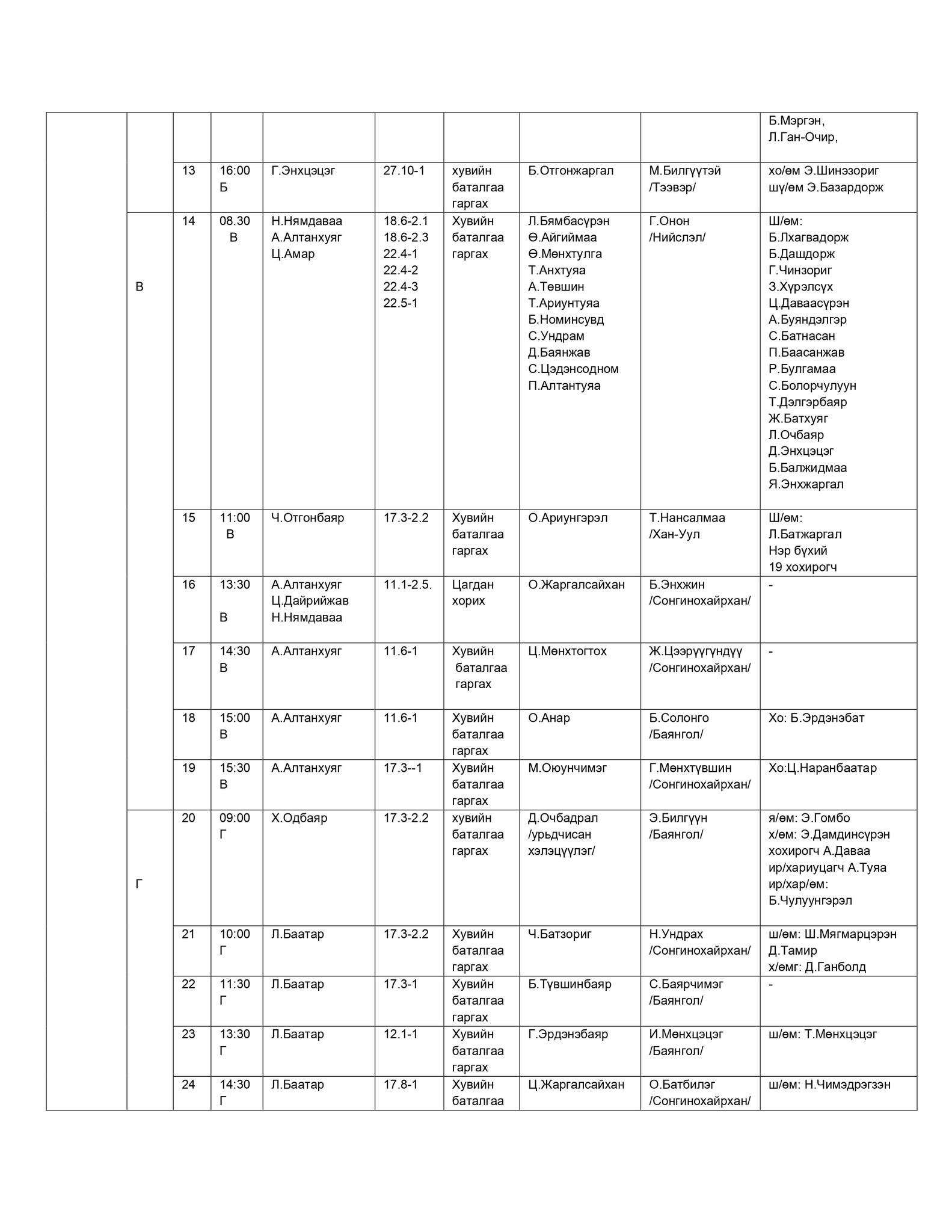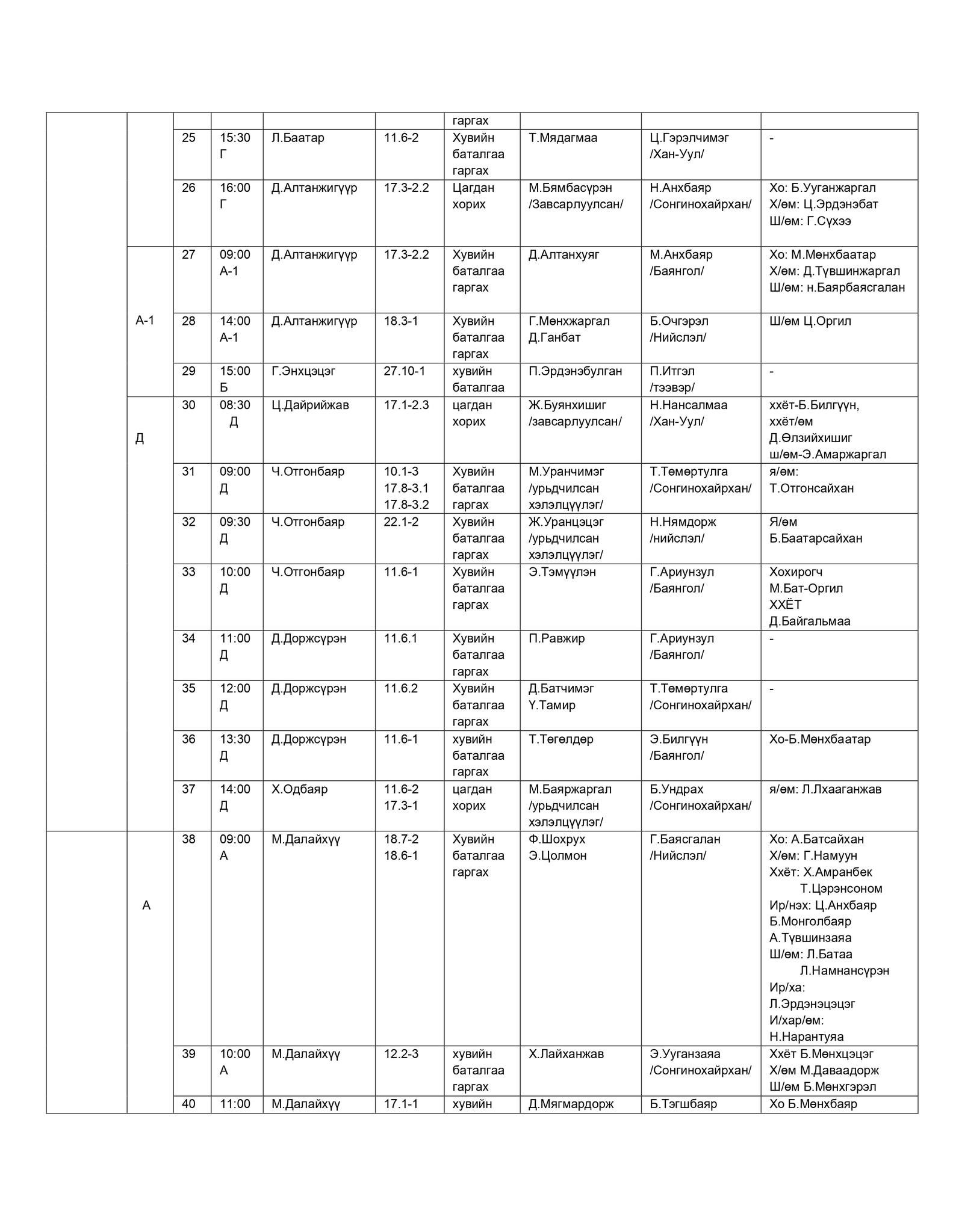 - БАЯНГОЛ, ХАН-УУЛ, СОНГИНОХАЙРХАН ДҮҮРГИЙН ЭРҮҮГИЙН ХЭРГИЙН АНХАН ШАТНЫ ТОЙРГИЙН ШҮҮХИЙН ШҮҮХ ХУРАЛДААНЫ ЗАР /2026.01.12-2026.01.16/