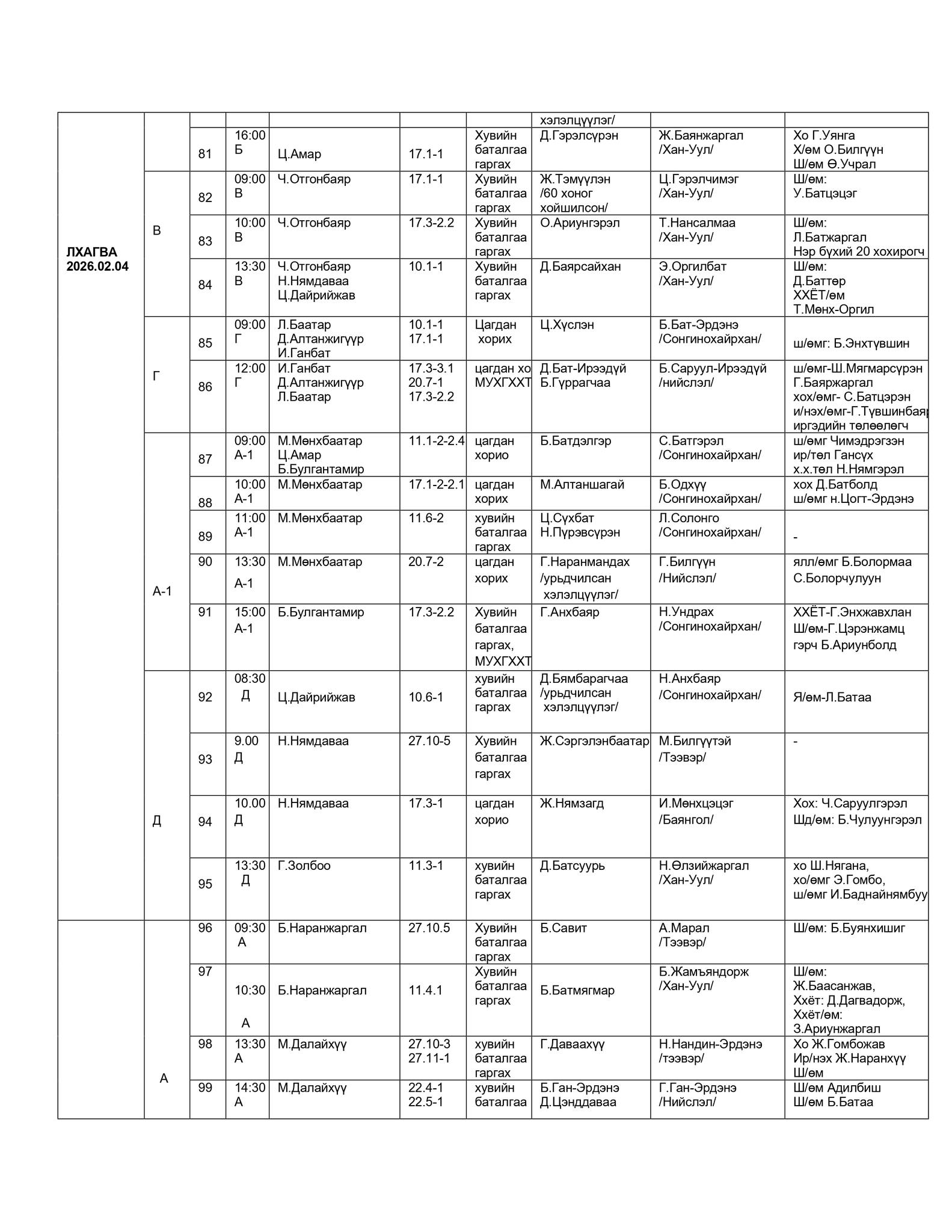 - БАЯНГОЛ, ХАН-УУЛ, СОНГИНОХАЙРХАН ДҮҮРГИЙН ЭРҮҮГИЙН ХЭРГИЙН АНХАН ШАТНЫ ТОЙРГИЙН ШҮҮХИЙН ШҮҮХ ХУРАЛДААНЫ ЗАР /2026.02.02-2025.02.06/