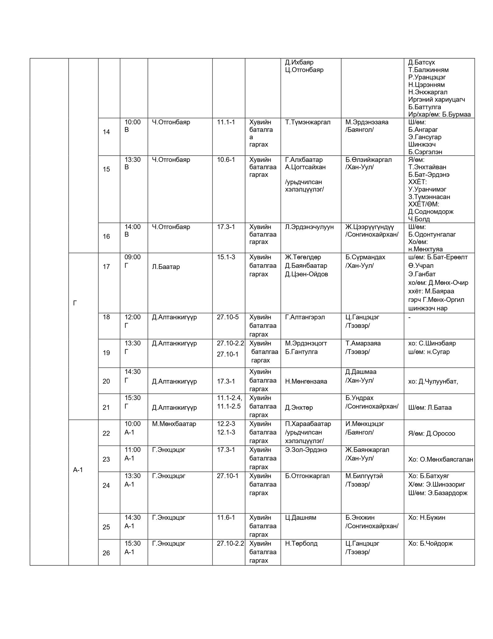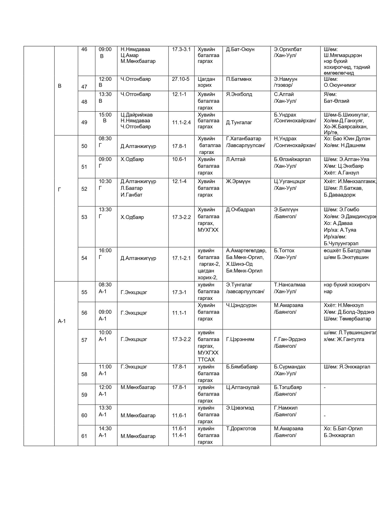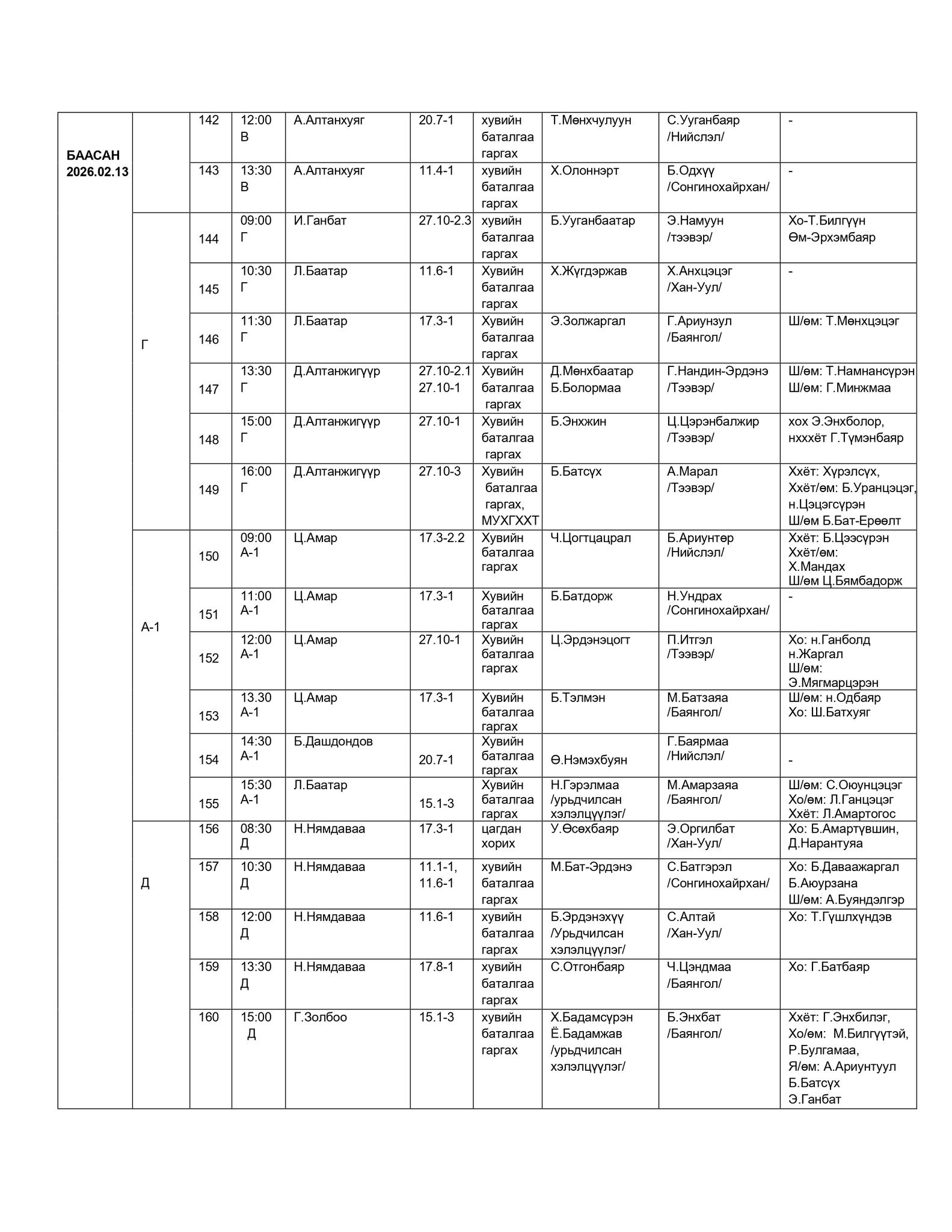 - БАЯНГОЛ, ХАН-УУЛ, СОНГИНОХАЙРХАН ДҮҮРГИЙН ЭРҮҮГИЙН ХЭРГИЙН АНХАН ШАТНЫ ТОЙРГИЙН ШҮҮХИЙН ШҮҮХ ХУРАЛДААНЫ ЗАР /2026.02.09-2025.02.13/