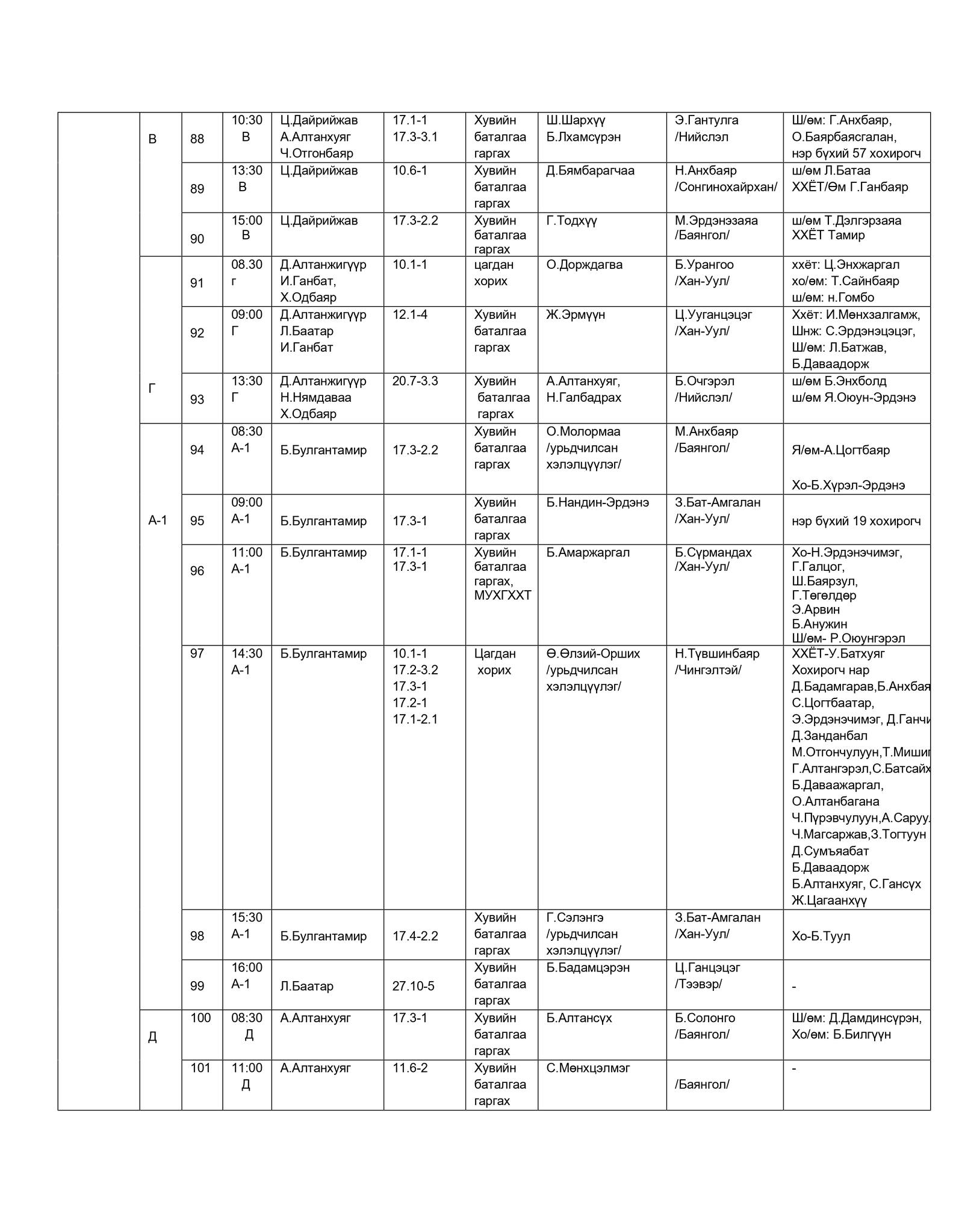 - БАЯНГОЛ, ХАН-УУЛ, СОНГИНОХАЙРХАН ДҮҮРГИЙН ЭРҮҮГИЙН ХЭРГИЙН АНХАН ШАТНЫ ТОЙРГИЙН ШҮҮХИЙН ШҮҮХ ХУРАЛДААНЫ ЗАР /2026.03.02-03.06/