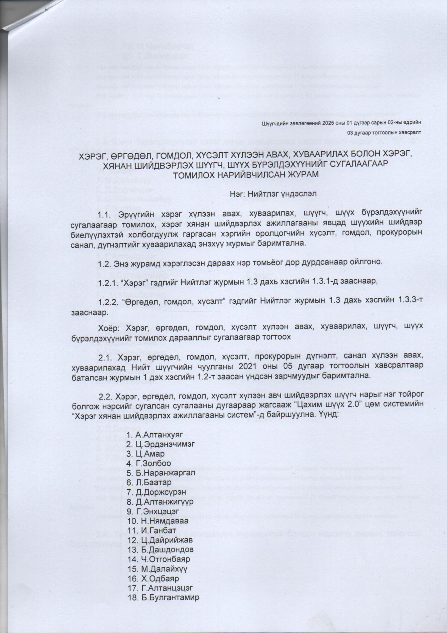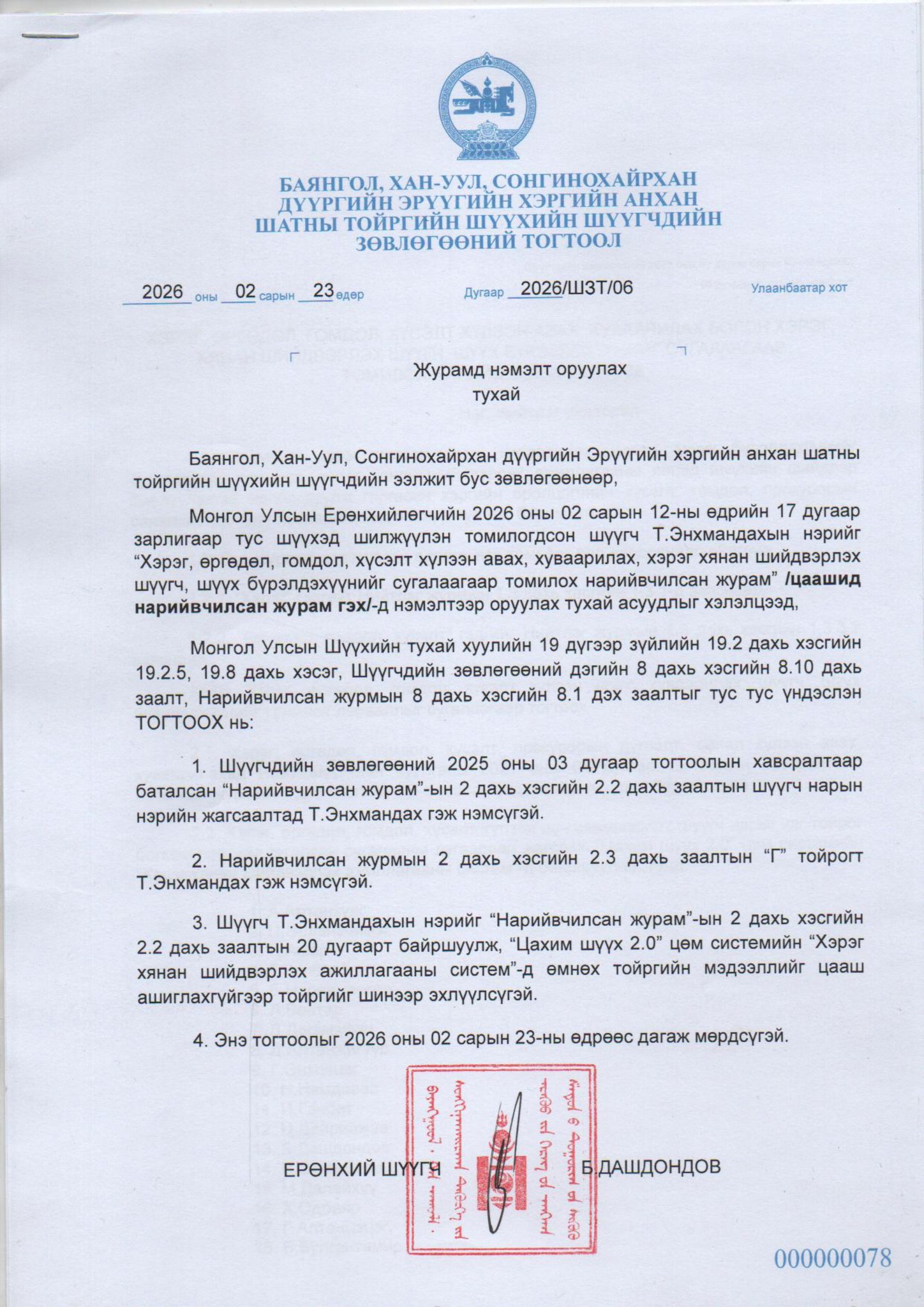 Баянгол, Хан-Уул, Сонгинохайрхан дүүргийн эрүүгийн хэргийн анхан шатны тойргийн шүүхийн шүүгчдийн зөвлөгөөний тогтоол