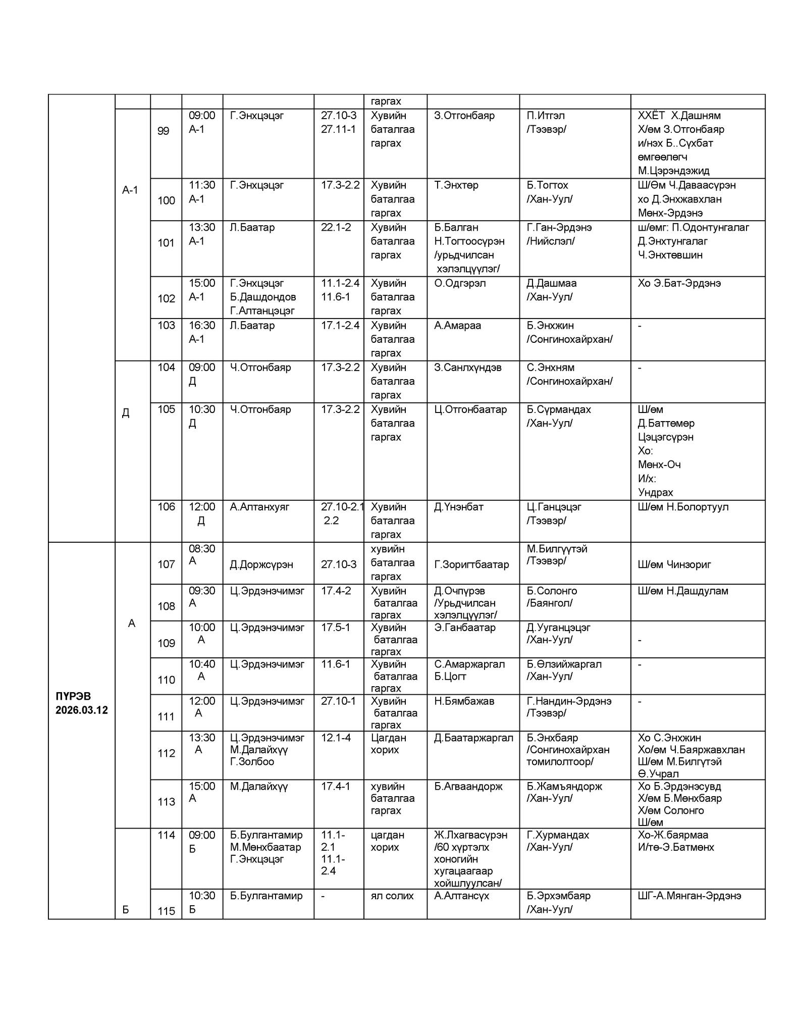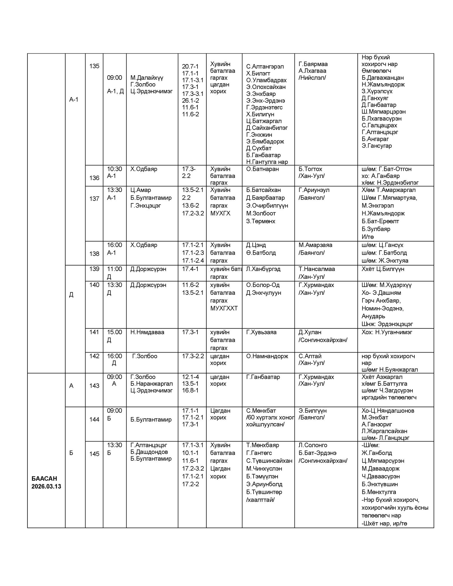 - БАЯНГОЛ, ХАН-УУЛ, СОНГИНОХАЙРХАН ДҮҮРГИЙН ЭРҮҮГИЙН ХЭРГИЙН АНХАН ШАТНЫ ТОЙРГИЙН ШҮҮХИЙН ШҮҮХ ХУРАЛДААНЫ ЗАР /2026.03.09-03.13/