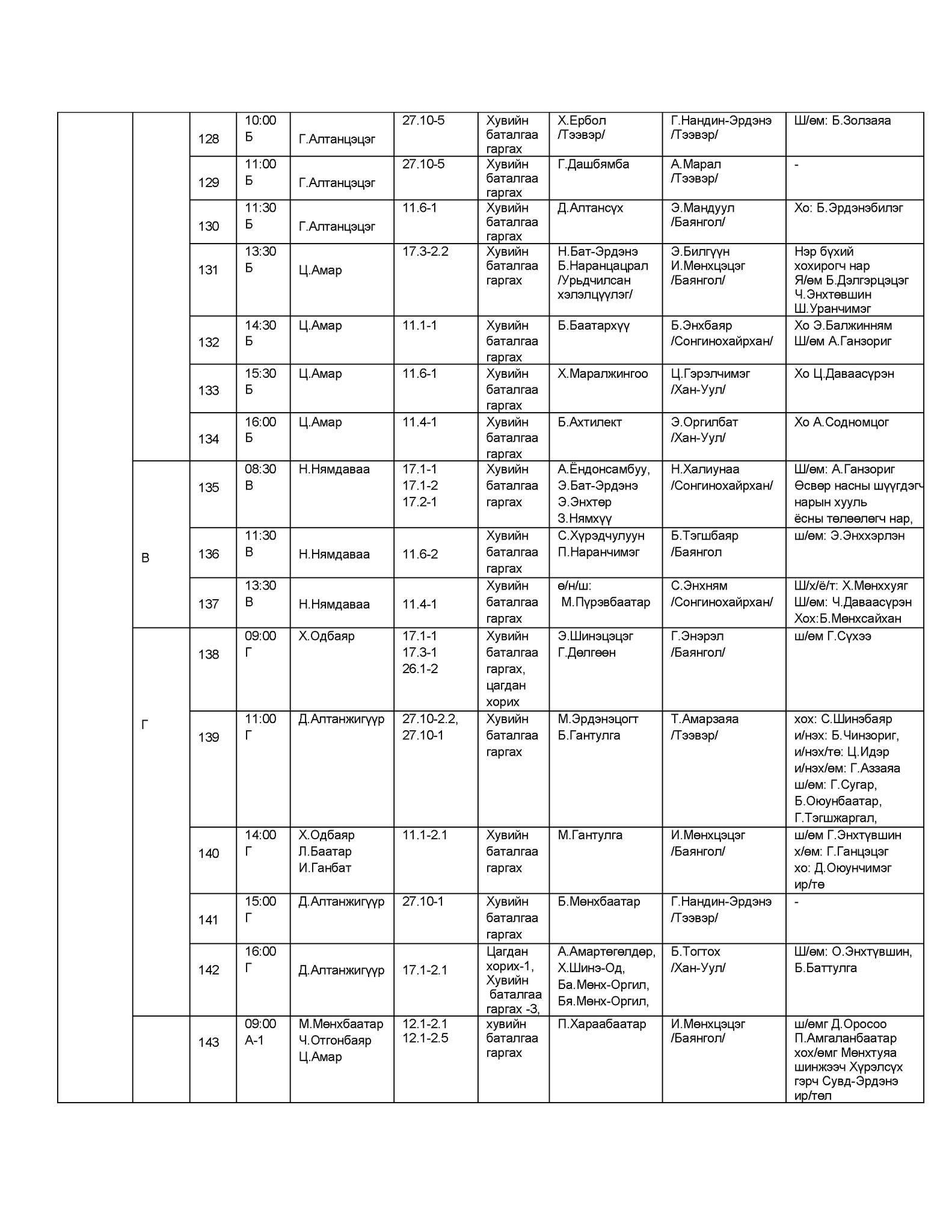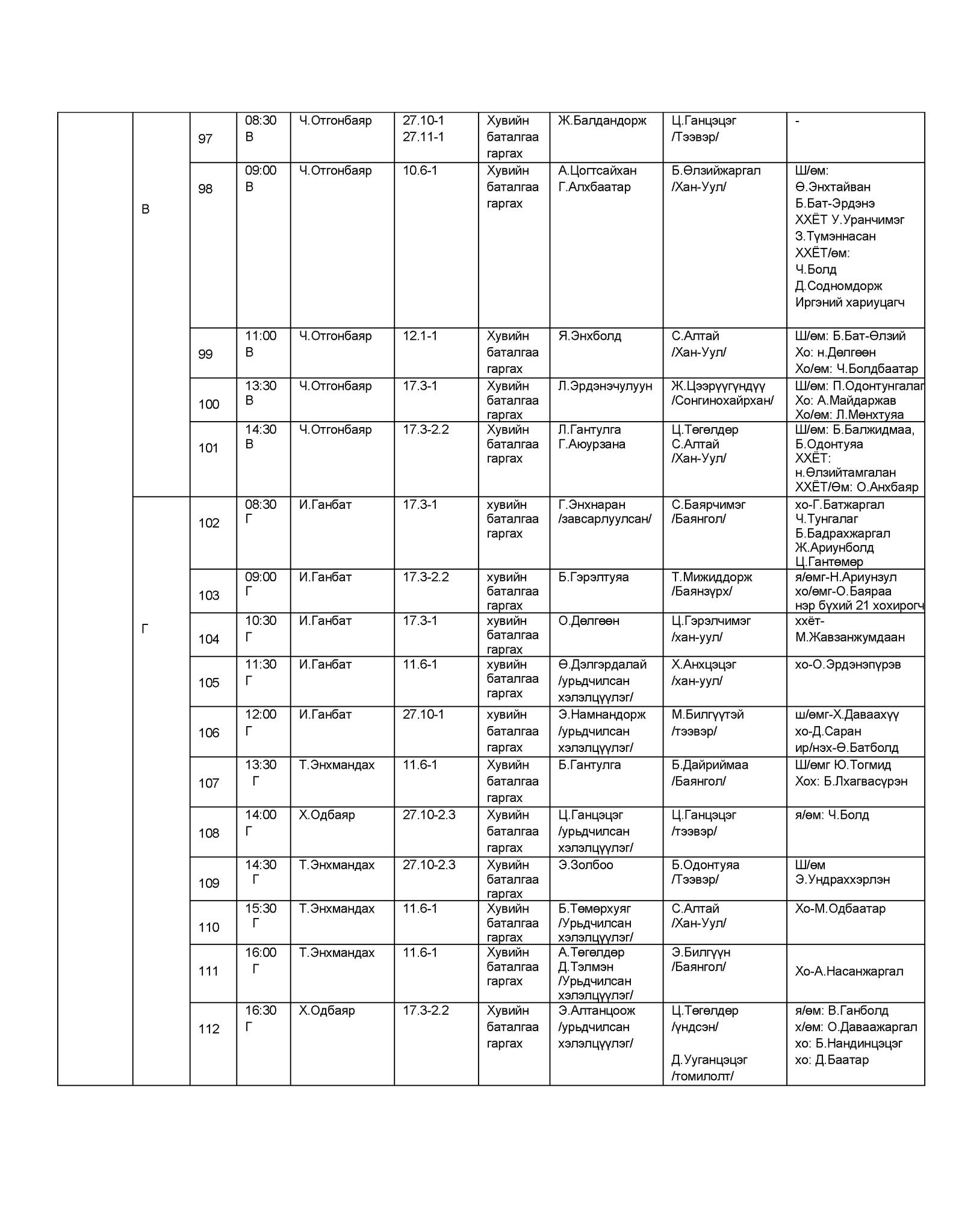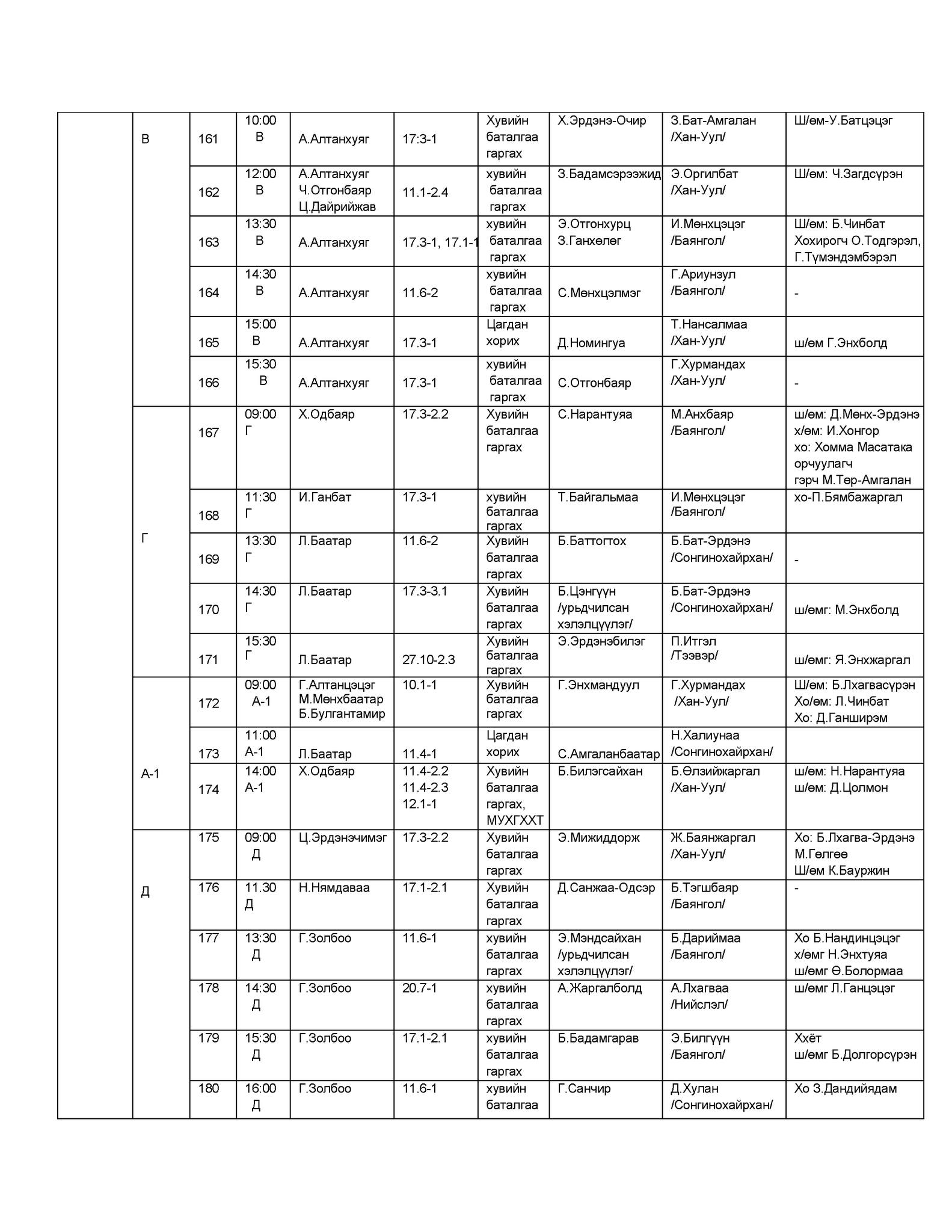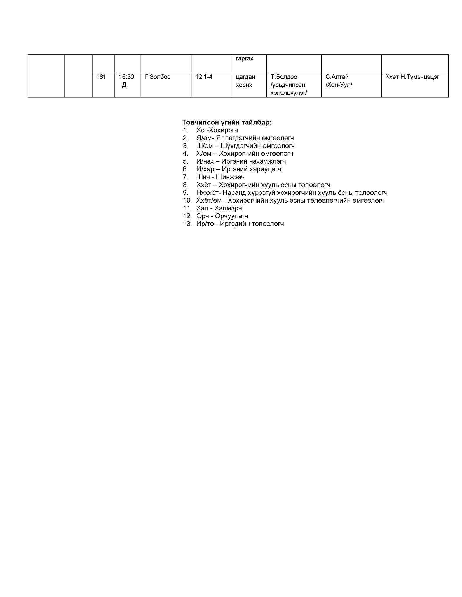 - БАЯНГОЛ, ХАН-УУЛ, СОНГИНОХАЙРХАН ДҮҮРГИЙН ЭРҮҮГИЙН ХЭРГИЙН АНХАН ШАТНЫ ТОЙРГИЙН ШҮҮХИЙН ШҮҮХ ХУРАЛДААНЫ ЗАР /2026.03.16-03.20/