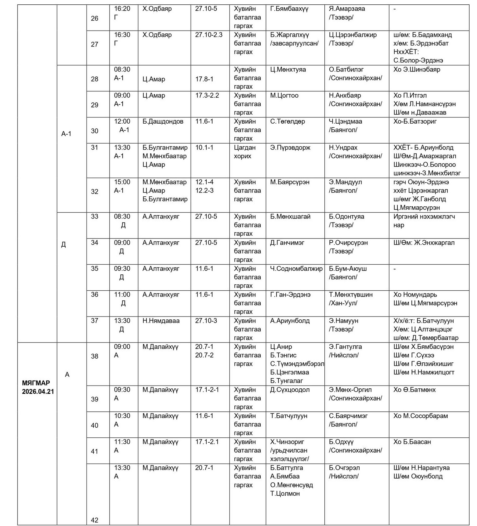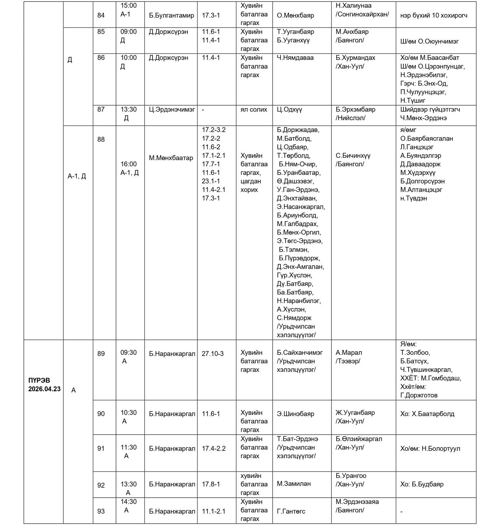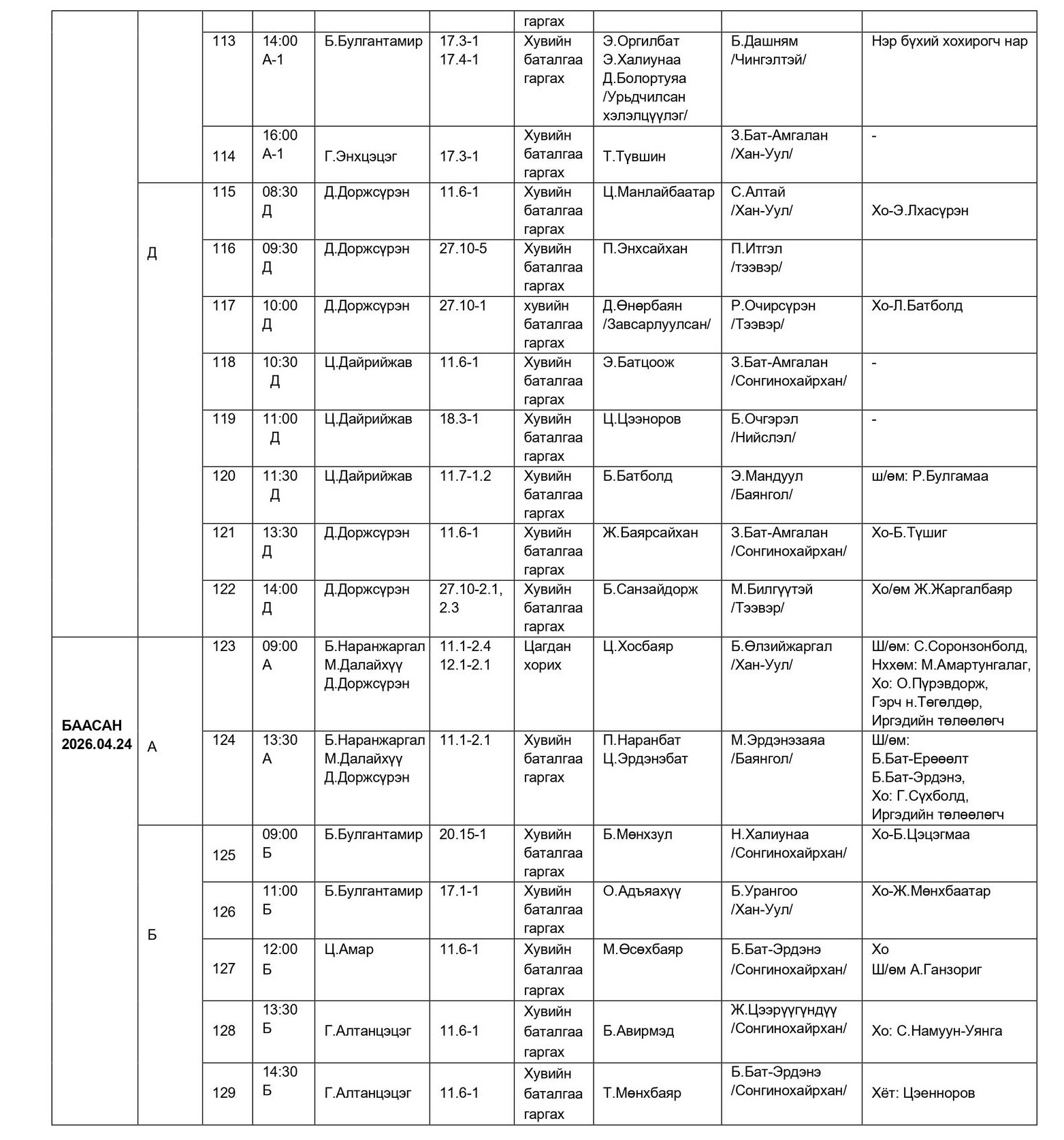 - БАЯНГОЛ, ХАН-УУЛ, СОНГИНОХАЙРХАН ДҮҮРГИЙН ЭРҮҮГИЙН ХЭРГИЙН АНХАН ШАТНЫ ТОЙРГИЙН ШҮҮХИЙН ШҮҮХ ХУРАЛДААНЫ ЗАР /2026.04.20-04.24/
